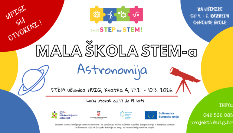 Hrvatsko društvo inženjera geotehnike (HDIG) poziva učenike od 4. do 6. razreda osnovne škole i njihove roditelje na upis u prvi ciklus Male STEM škole Astronomije.
