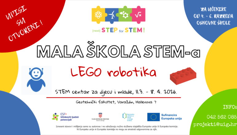 Hrvatsko društvo inženjera geotehnike (HDIG) poziva učenike od 4. do 6. razreda osnovne škole i njihove roditelje na upis u drugi ciklus Male STEM škole Lego robotike.