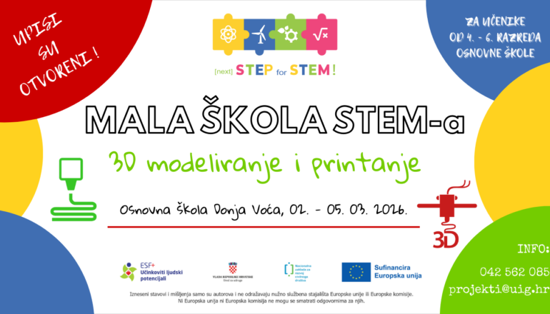 Hrvatsko društvo inženjera geotehnike (HDIG) poziva učenike od 4. do 6. razreda osnovne škole i njihove roditelje na upis u peti ciklus Male STEM škole 3D modeliranje.